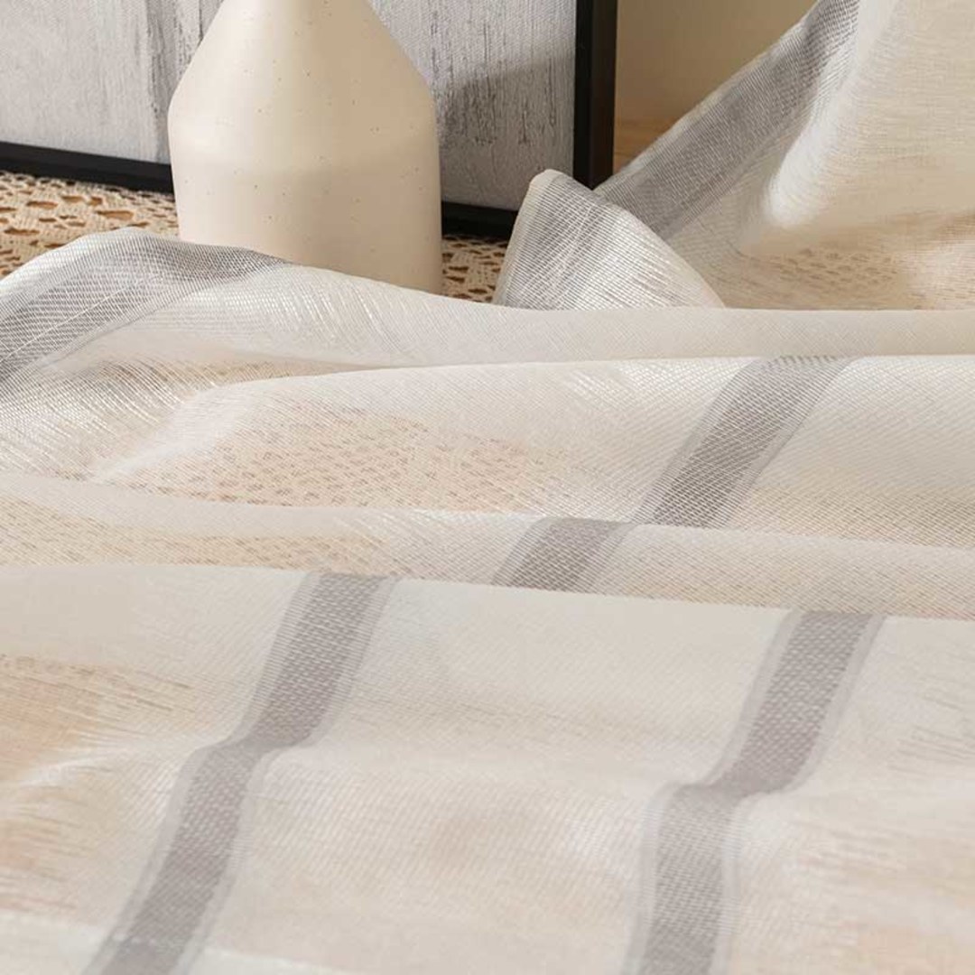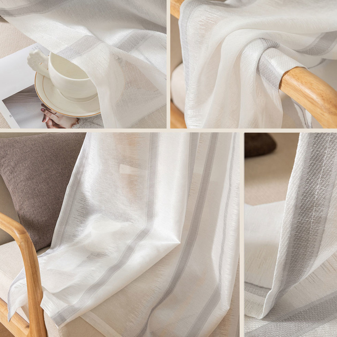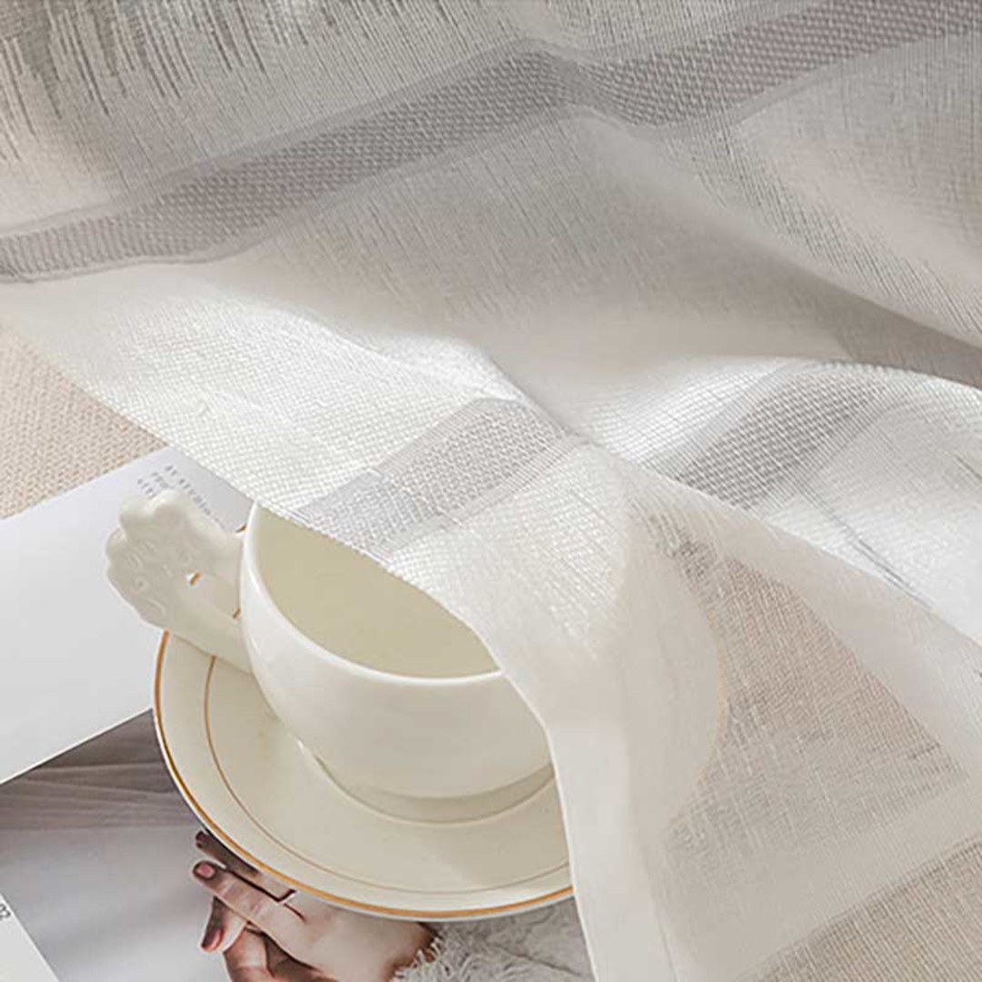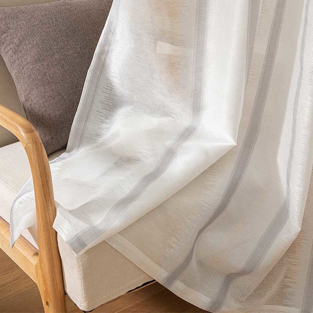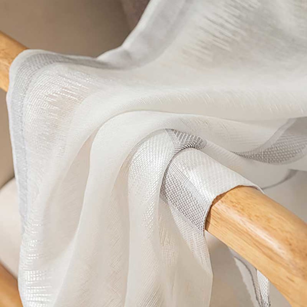 Créez des intérieurs luxueux avec ce voile blanc élégant et sophistiqué. Ces rideaux voilés à rayures uniques présentent des motifs et des textures complexes qui créent un espace élégant et classique sans perdre l’esthétique minimaliste.