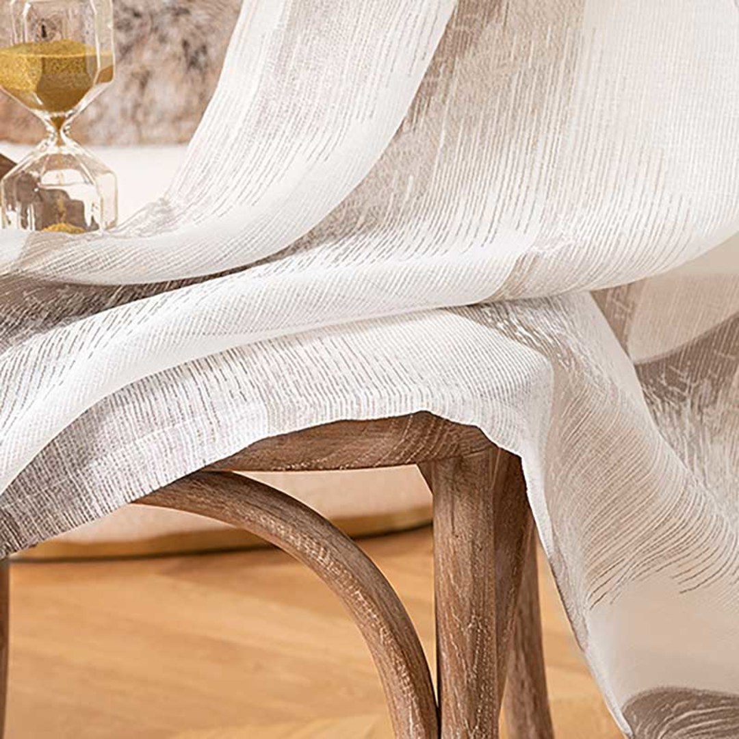 Ces rideaux voilages uniques présentent des motifs complexes, des textures et un léger éclat qui créent un espace élégant et classique sans sacrifier l’esthétique minimaliste.