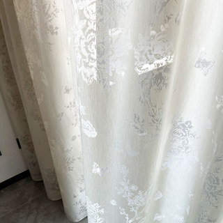 Ce tissu voilé unique présente un élégant motif floral avec des détails complexes de roses, de branches et de papillons. Le tissu semi-transparent filtre délicatement la lumière tout en ajoutant une touche florale gracieuse, idéale pour les intérieurs classiques et aérés.