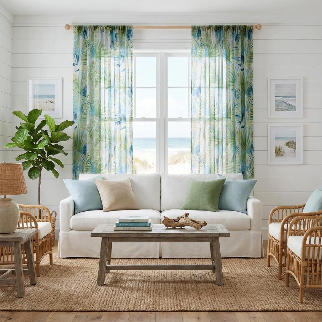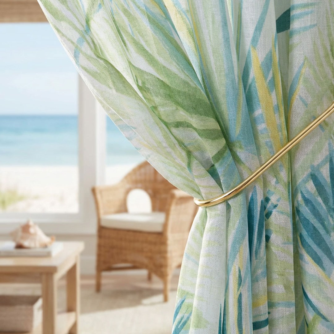 Palm Delight Tropical Leaves Green Blue Voile Curtain met en valeur un motif de feuilles tropicales dans des tons rafraîchissants de vert et de bleu, créant une atmosphère paisible et vivifiante. Les détails complexes des feuilles apportent une touche d'élégance tropicale à votre intérieur, vous permettant d'embrasser la sérénité d'une oasis luxuriante.Nos rideaux en voile sur mesure sont méticuleusement confectionnés pour répondre à vos préférences spécifiques. Ils sont disponibles dans une variété de styles de plis pour s'adapter à vos goûts, notamment le galon plissé, l’œillet, le triple épingle, le biais personnalisé, le plis creux inversé, le patin, le coulisse arrière, la poche à tringle et le rideau à vague. Découvrez comment les rideaux voilages tropicaux peuvent moderniser n'importe quelle pièce.