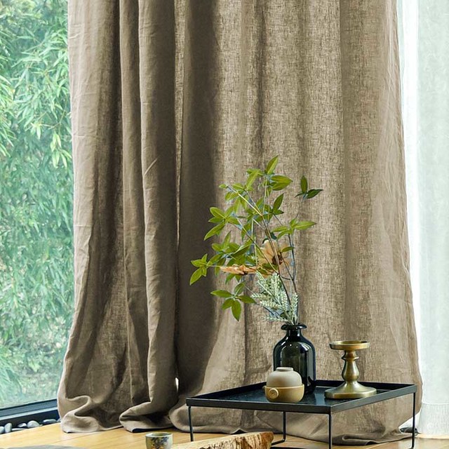 Wabi Sabi Pure Flax Linen Mocha Light Brown Heavy Semi Sheer Voile Curtain