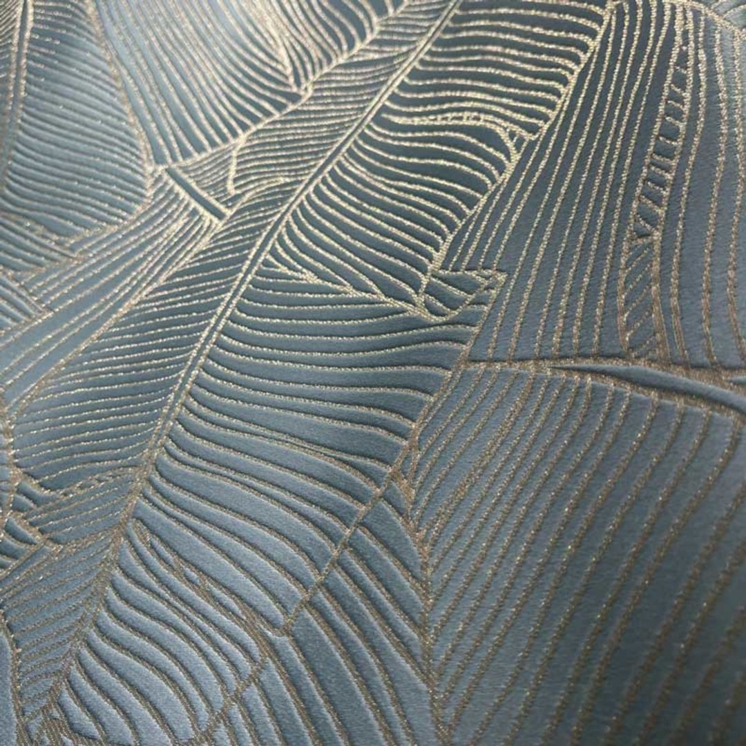 Banana Leaves Luxury 3D Jacquard Duck Egg Blue Curtain 5% OFF