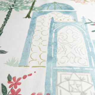 Inspired by a Persian garden, this luxurious velvet curtain features intricate motifs of fountains, exotic trees, delicate florals, classic domed architecture, and graceful peacocks. The richly detailed design brings an air of romance and timeless elegance, making it a striking statement piece for both traditional and contemporary interiors.