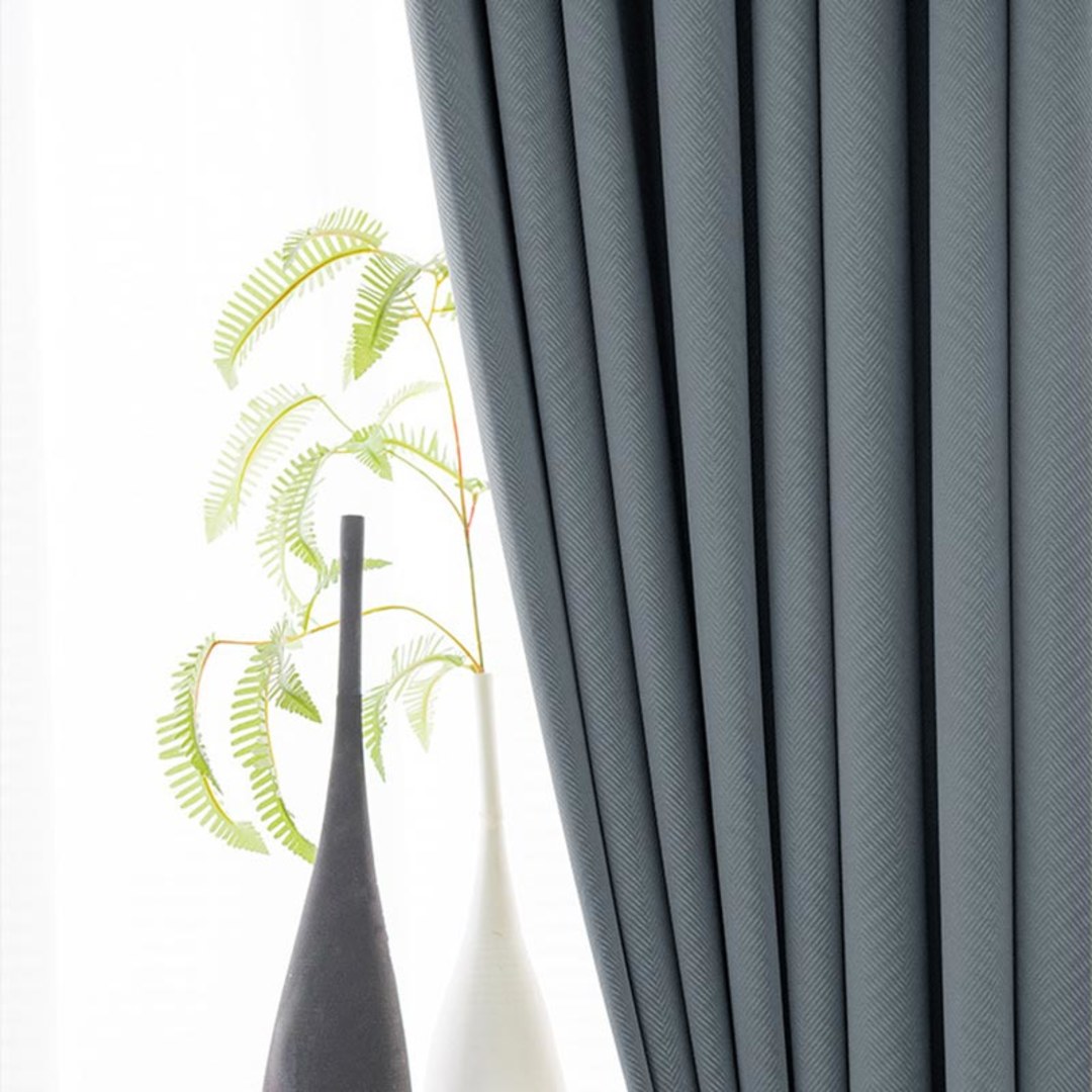 Sunnyvale Herringbone Haze Blue Textured Velvet Blackout Curtain 10% OFF