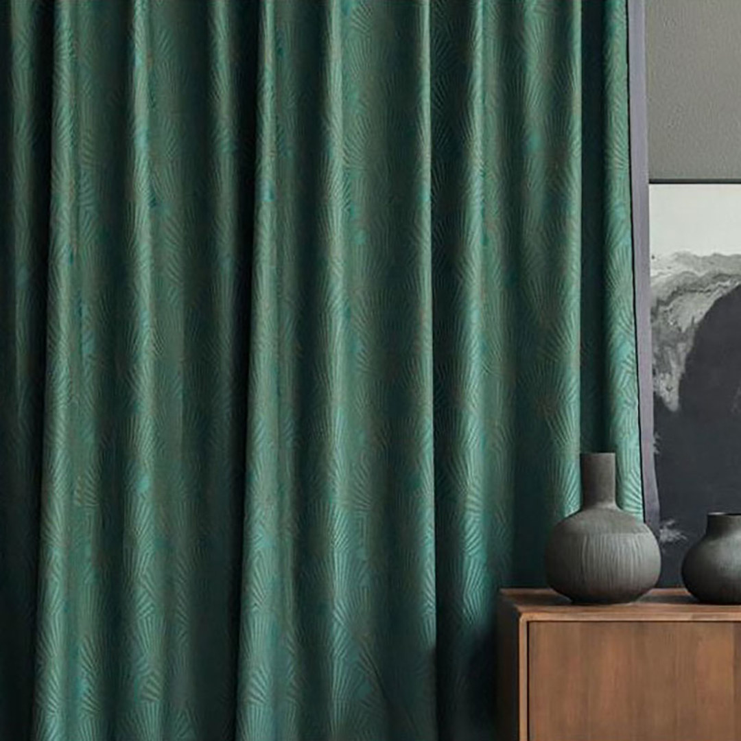 These luxurious jacquard curtains feature an elegant Oriental fan motif, with an intricately woven design that creates rich texture and dimensional depth.