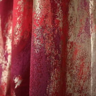 Dazzling Brushwork Luxury Jacquard Red & Gold Abstract Curtain 10% OFF