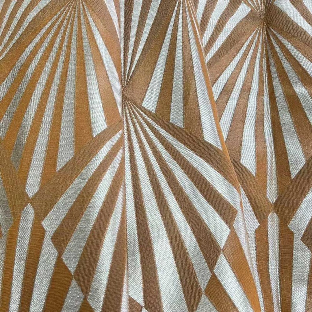 Deco Diamond Jacquard Geometric Terracotta Orange Faux Silk Curtains