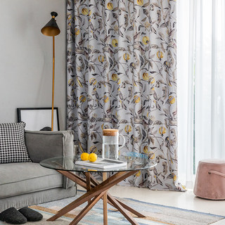Earthy Whimsy Yellow and Gold Modern Floral Curtains