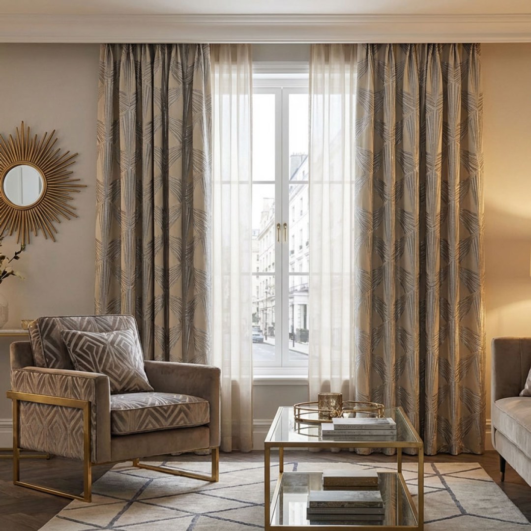 Prism Axis Art Deco Gray and Silver Geometric Curtains