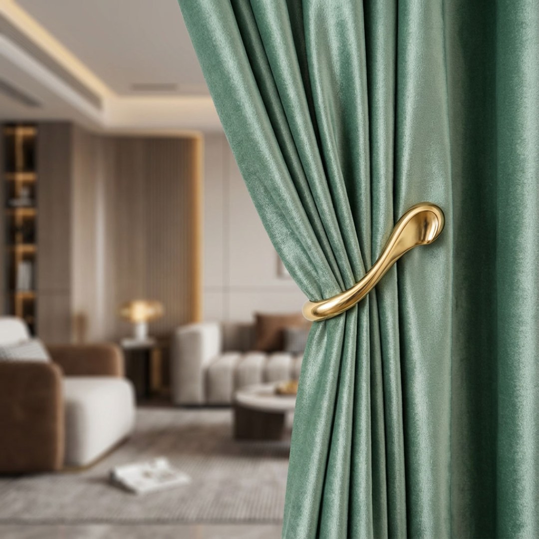 Luminous Luxe Metallic Sage Duck Egg Green Velvet Curtains
