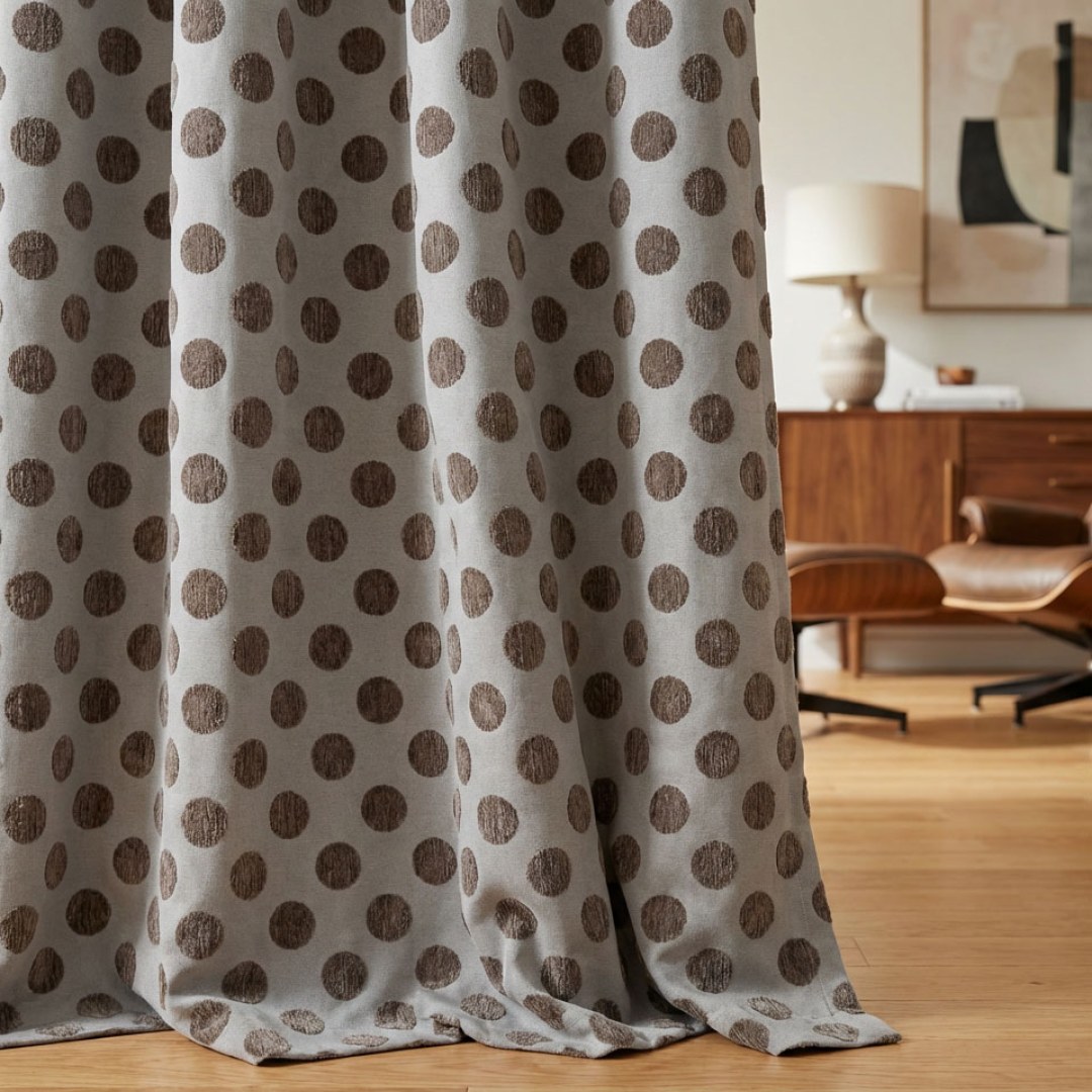 Dottie Delight features a timeless polka dot motif and plush chenille texture that complement a wide range of interior styles, from mid-century modern to contemporary and cozy casual. Its playful yet refined design brings personality to any room while adapting effortlessly to different décor themes and color palettes.
