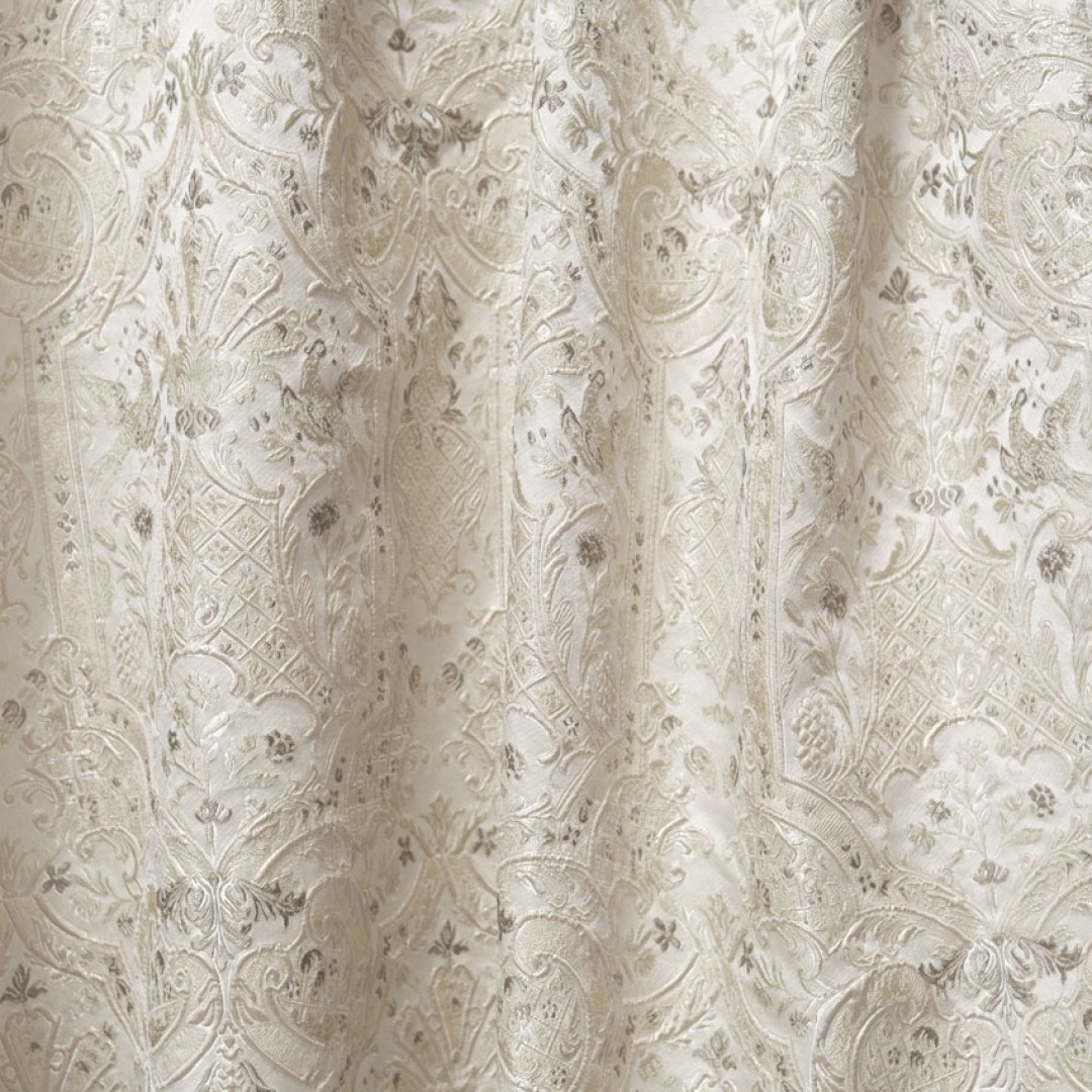 Indulge in timeless opulence with this exquisite jacquard fabric. Intricate golden arabesque vines and floral medallions shimmer with a subtle metallic sheen, creating a palatial glow perfect for elegant living rooms, dining rooms, and grand bedrooms. Rich texture, soft drape, and sophisticated neutral tones that elevate any interior to royal status.