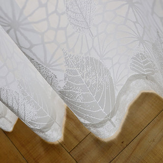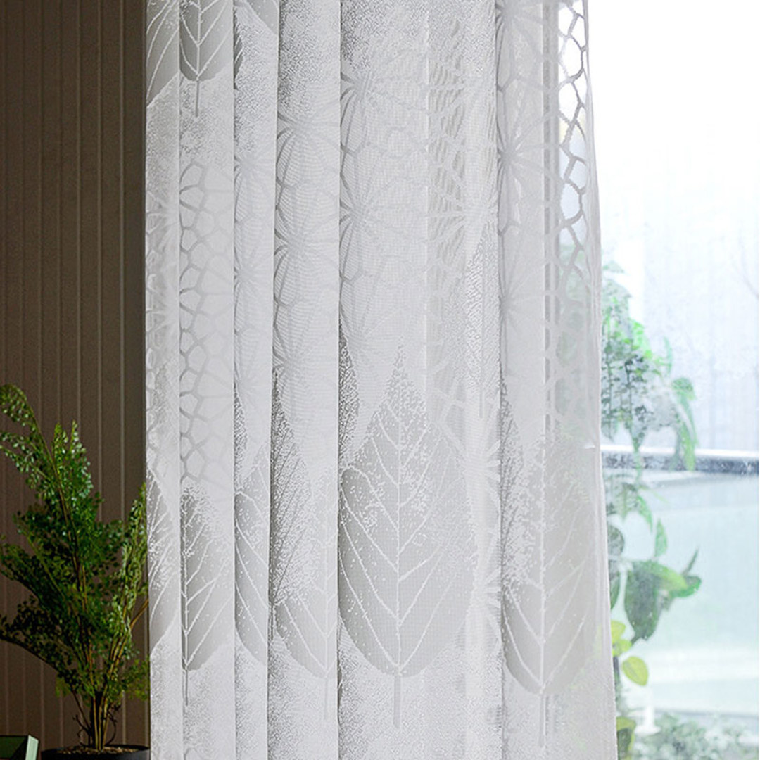 Autumn Days White Geometric Lines And Leaf Design Voile Net Curtain