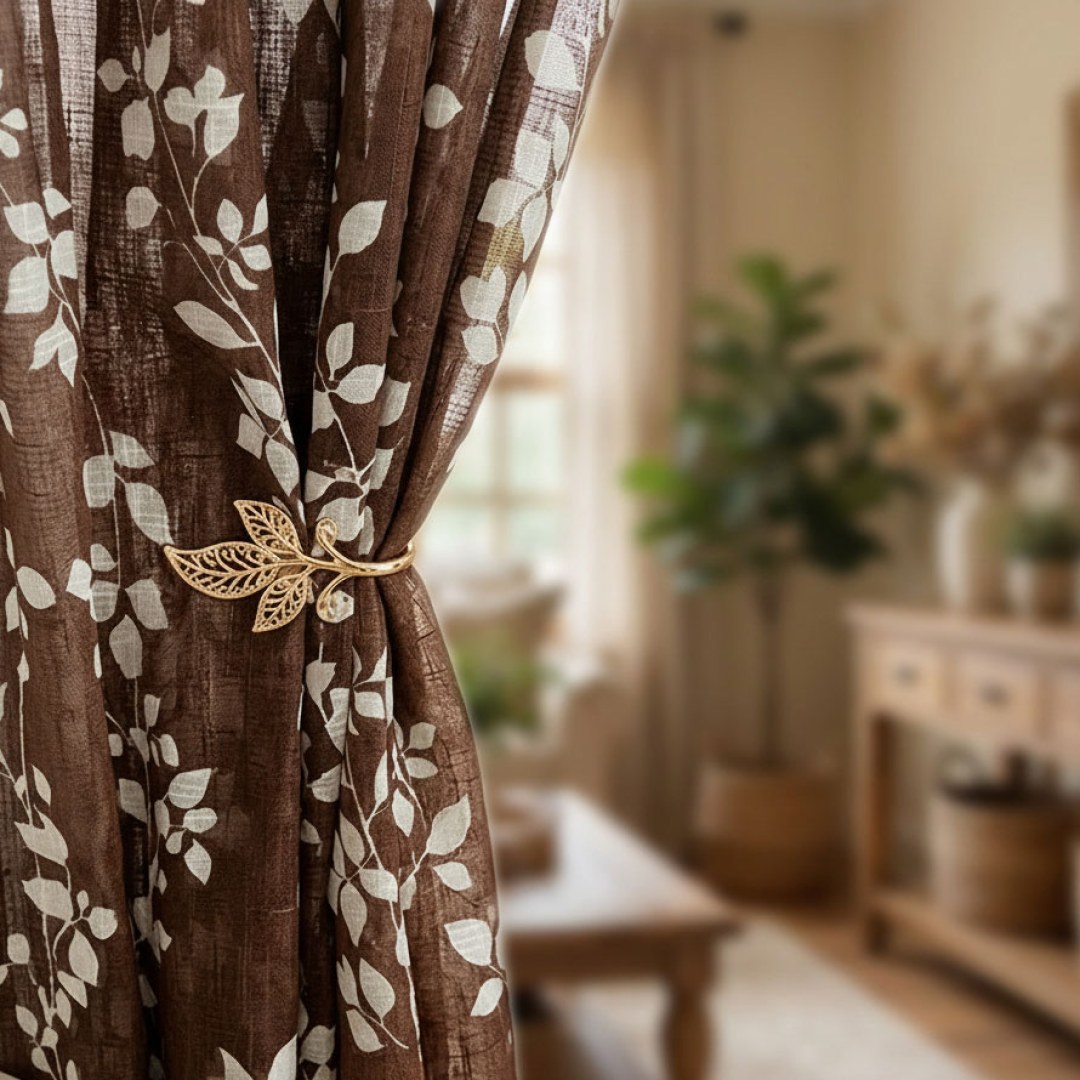 Pascal Brown Vine Print Semi Sheer Voile Curtain