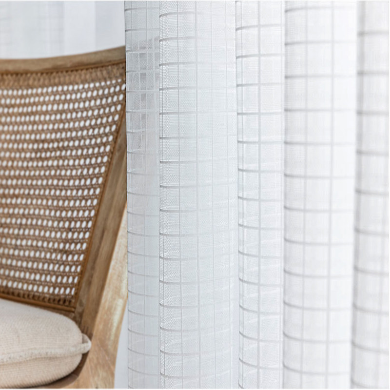 In Grid Jacquard Windowpane Check White Sheer Voile Curtain
