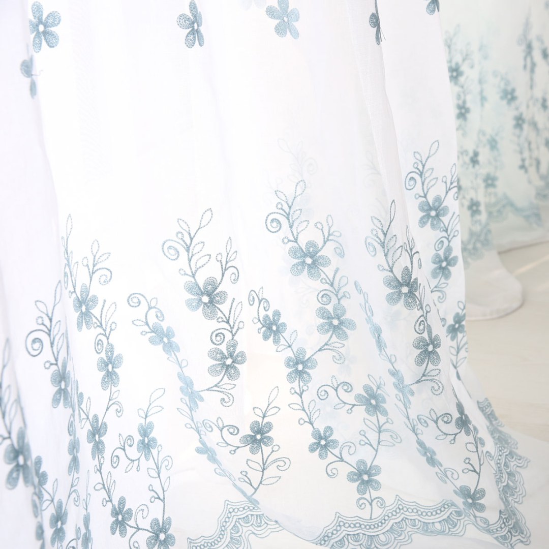 Softly embroidered with delicate floral motifs, these voile curtains add airy elegance and subtle texture. Their muted tones and refined design make them versatile for country, farmhouse, shabby chic, and romantic interiors.