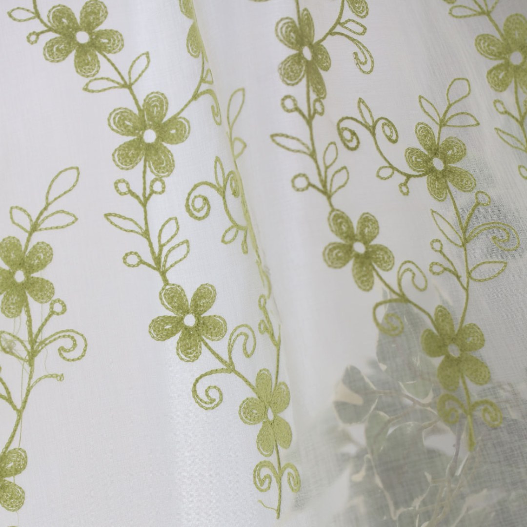 Touch Of Grace Embroidered Lime Green Flower Voile Curtain