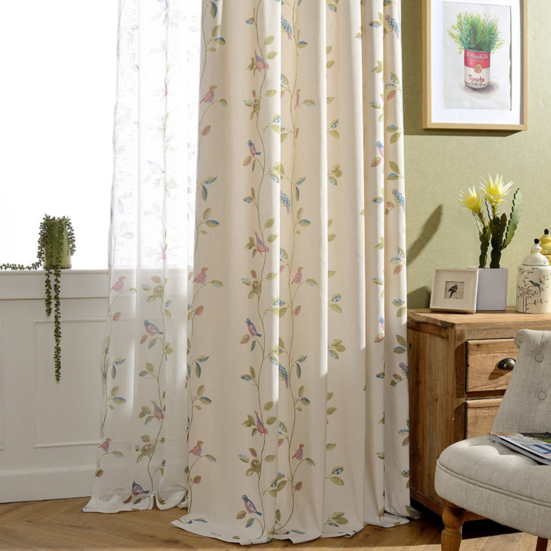Misty Meadow Floral and Bird Print Voile Curtain 10% OFF