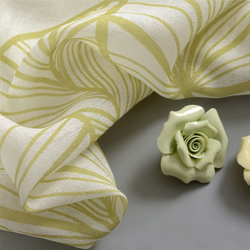 These sheer curtains feature stylized palm leaf patterns woven into textured fabric, combining lightness with subtle depth.