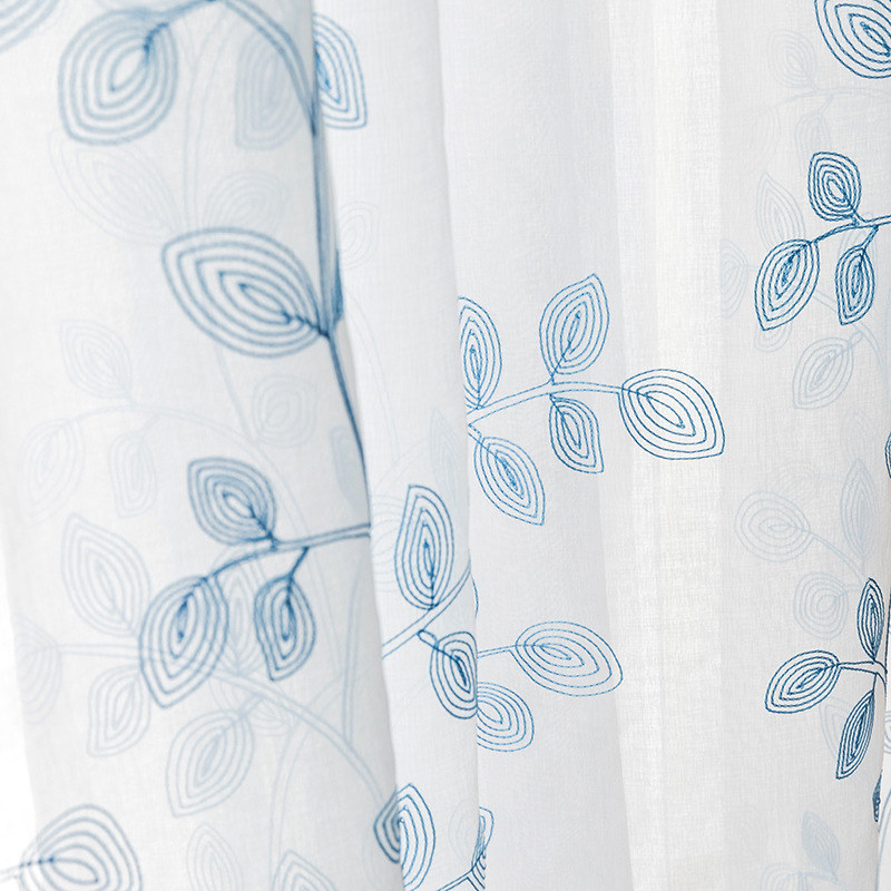 Winter Branches Blue Leaf Embroidered Sheer Curtain
