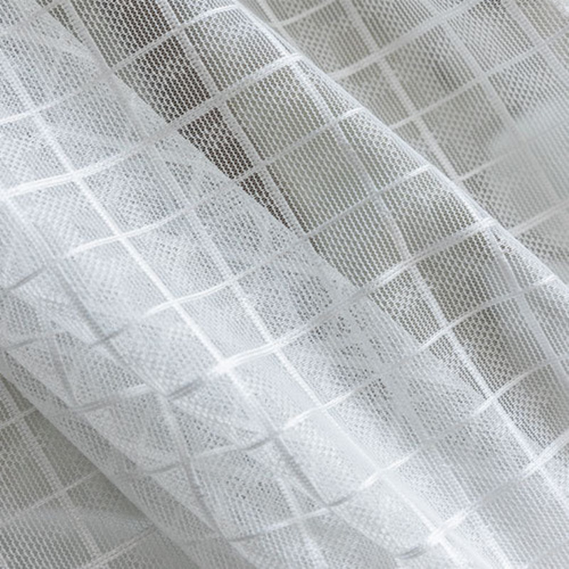 In Grid Jacquard Windowpane Check White Sheer Curtain