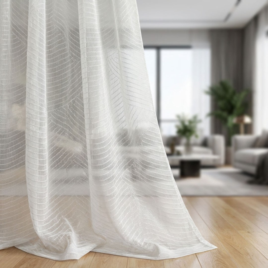 A modern sheer fabric with a textured 3D jacquard weave. Features a raised wave pattern that adds depth while softly filtering light - perfect for stylish, airy interiors.