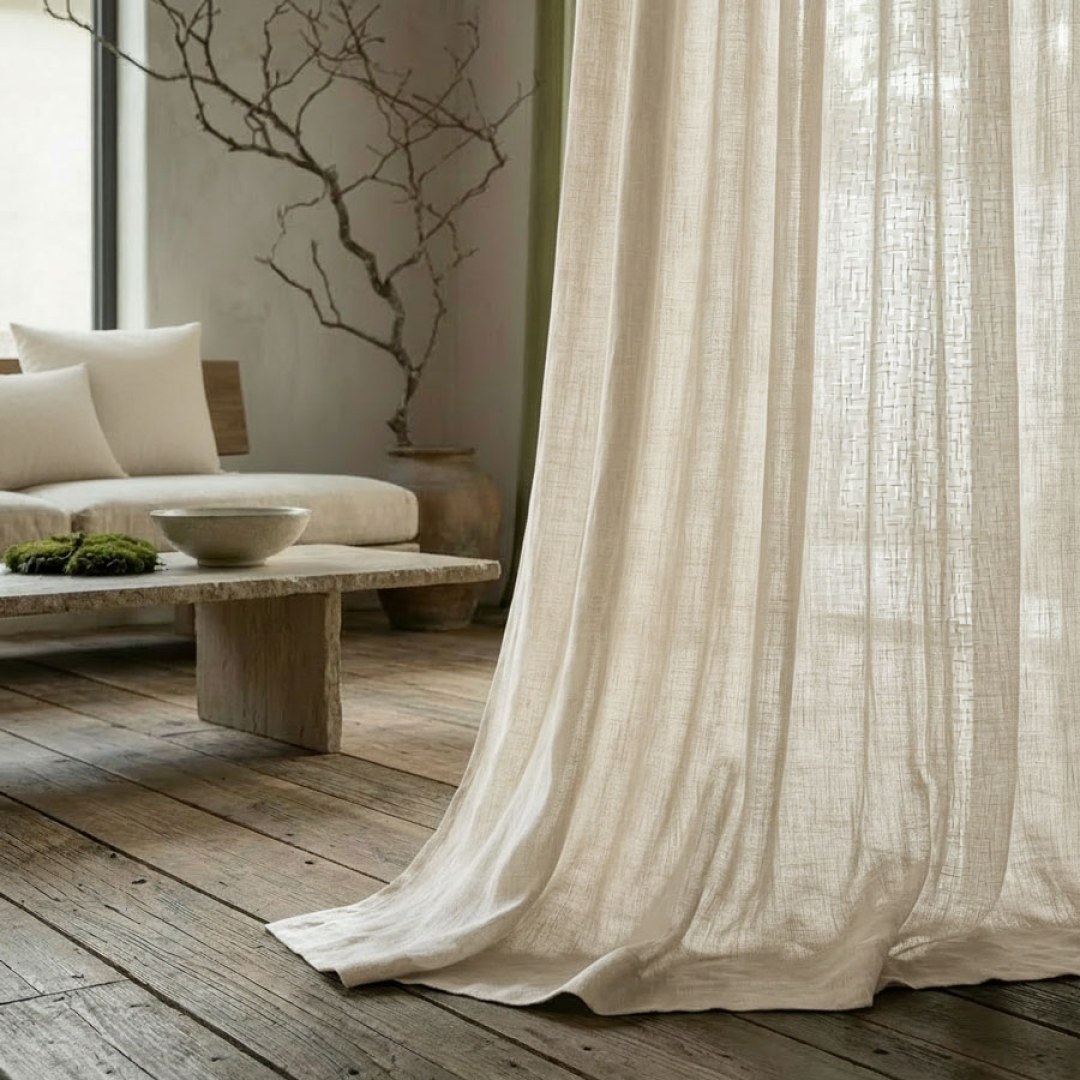 Wabi Sabi 100% Flax Linen Ivory White Heavy Sheer Curtain