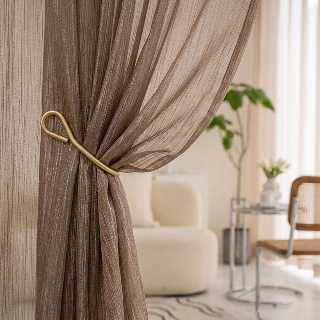 Lightweight organza sheer curtains with a vertical striped weave and subtle shimmer, adding texture and movement to any interior. Softly filtering natural light, they create an airy, elegant ambiance.
