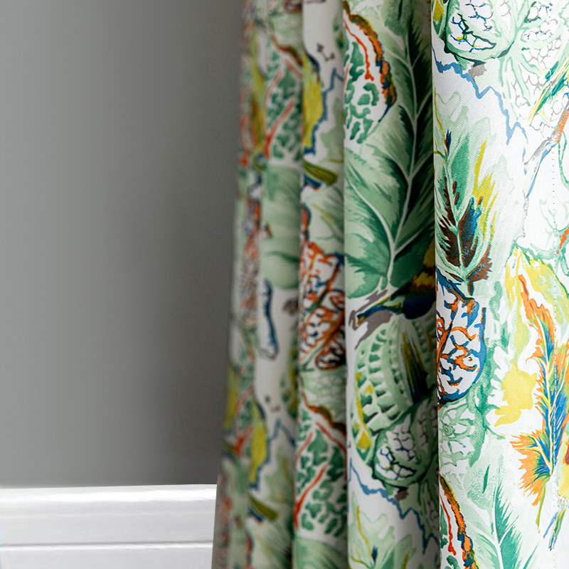 Alexsandra Colourful Leaves Flowers Birds Vibrant Multi Coloured Curtain