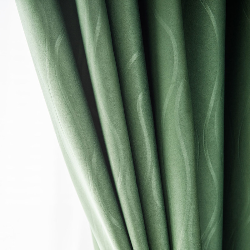 Rippled Waves Superthick Olive Green Blackout Curtain 5% OFF