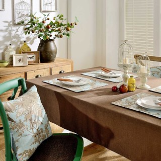 A linen style curtain featuring magpies in flight and lush ferns in a vintage blue and brown palette. Adds French country, rustic elegance to any room.