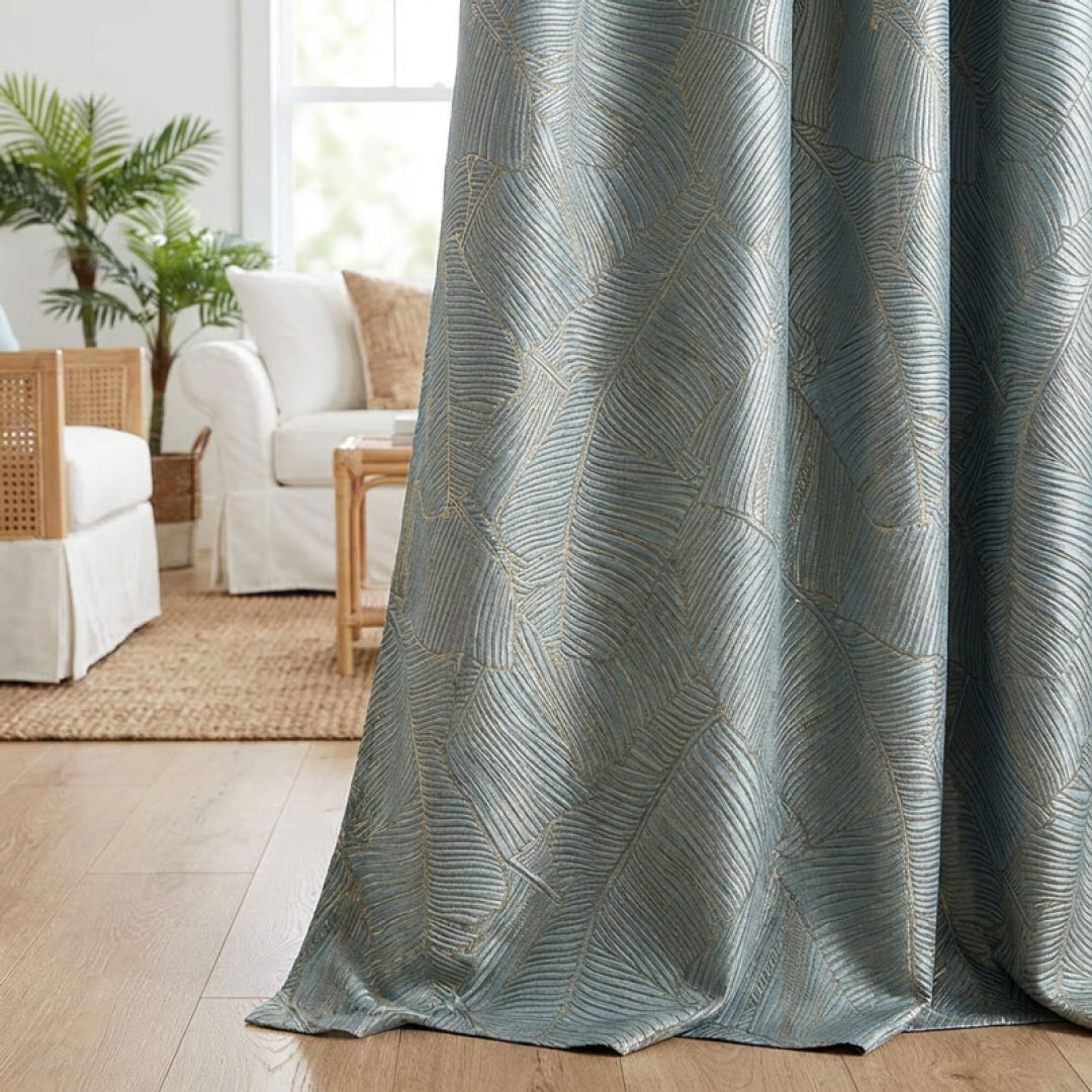Banana Leaves Luxury 3D Jacquard Duck Egg Blue Curtain 5% OFF