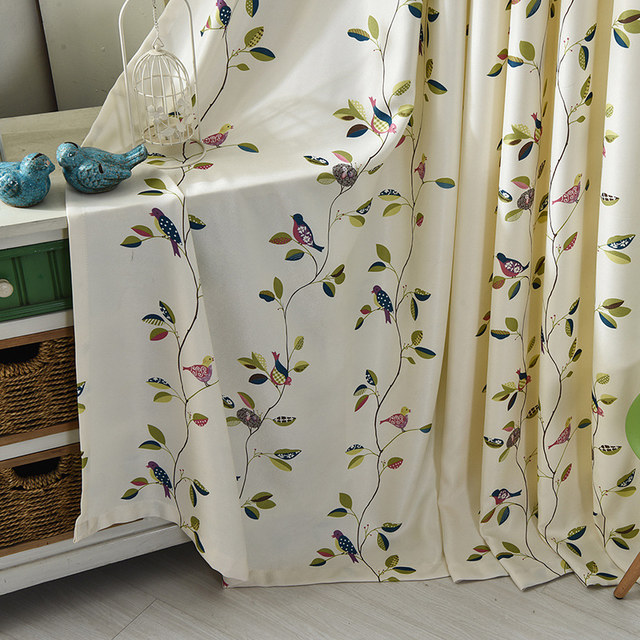 Misty Meadow Floral and Bird Print Double Sided Curtain