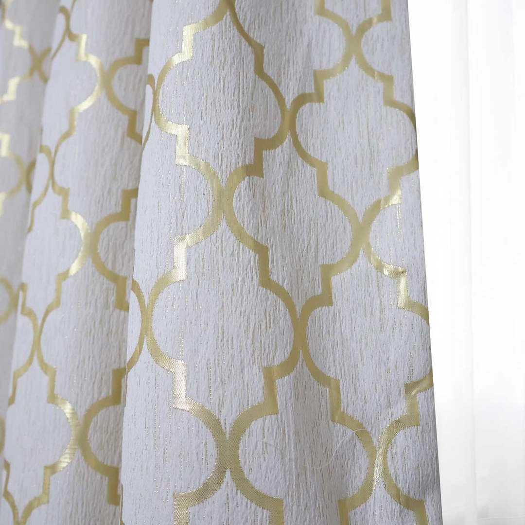 Moroccan Trellis Cream and Metallic Gold Arabesque Geometric Curtain