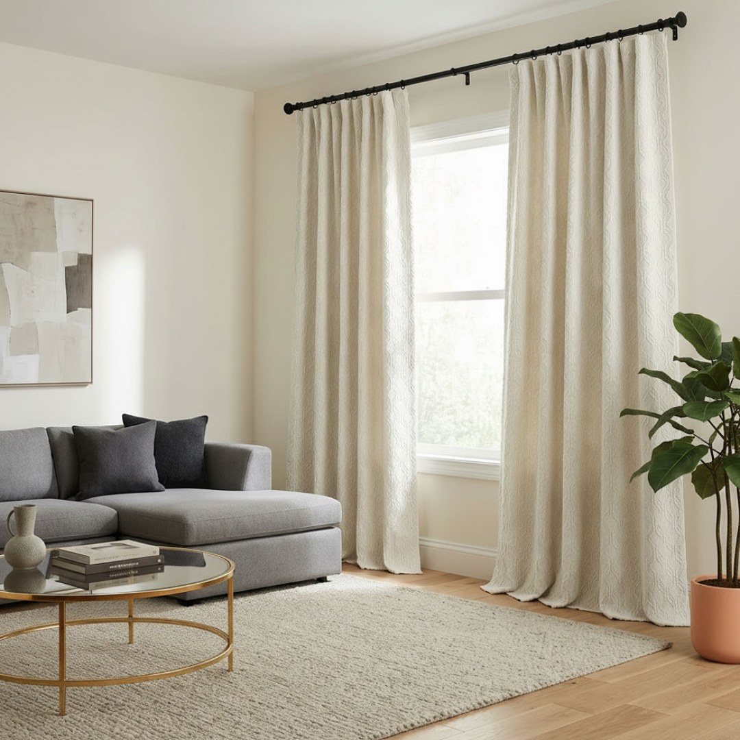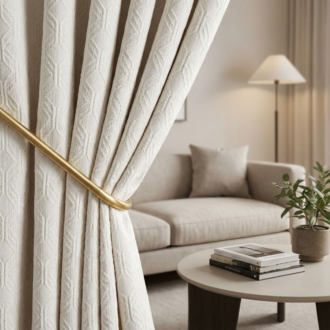 Diamond Patchwork Geometric Chenille Cream Off White Curtain
