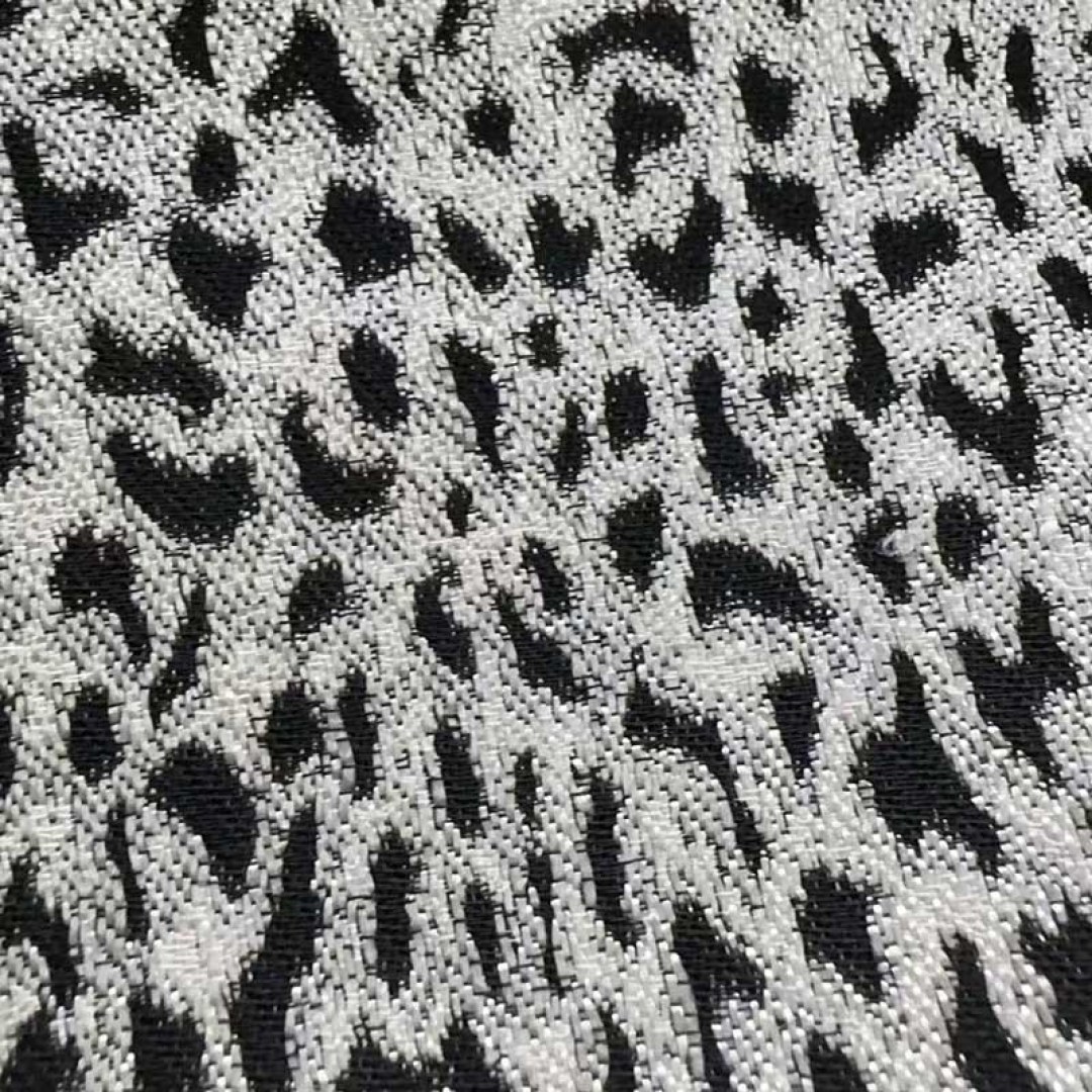 A sleek black-and-silver leopard-inspired fabric that adds a bold, contemporary touch to any space with its monochromatic luxury.