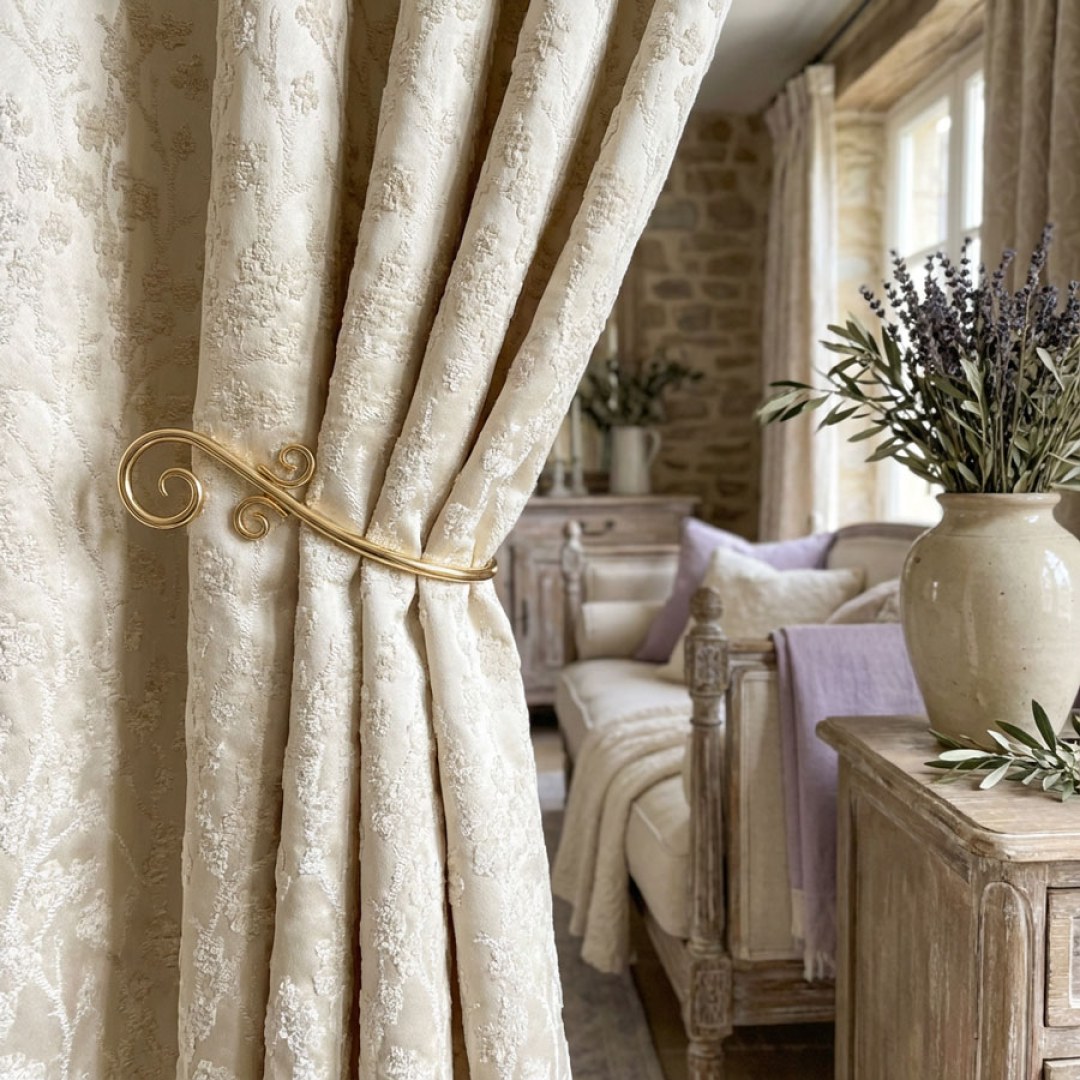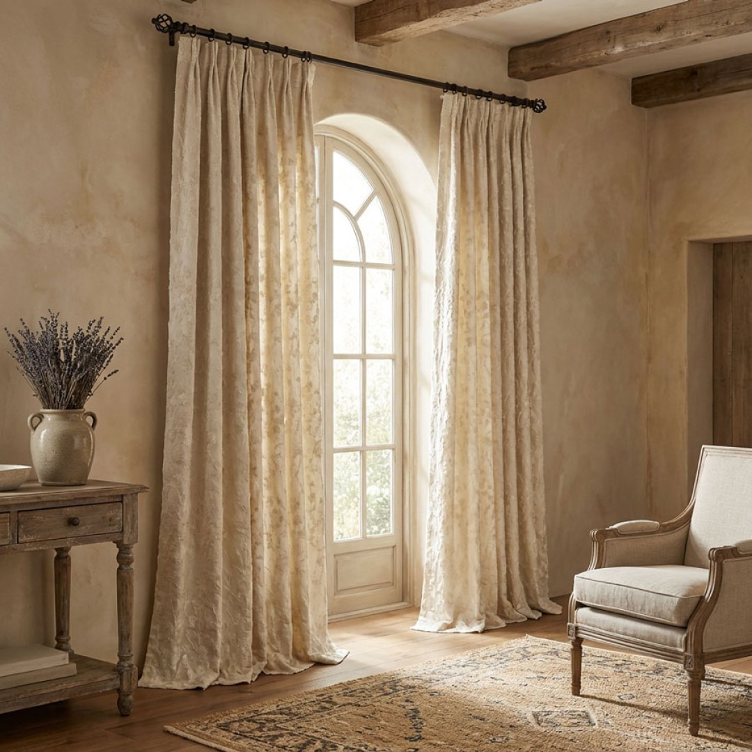 Cherry Blossoms Cream Floral Chenille Blackout Curtain