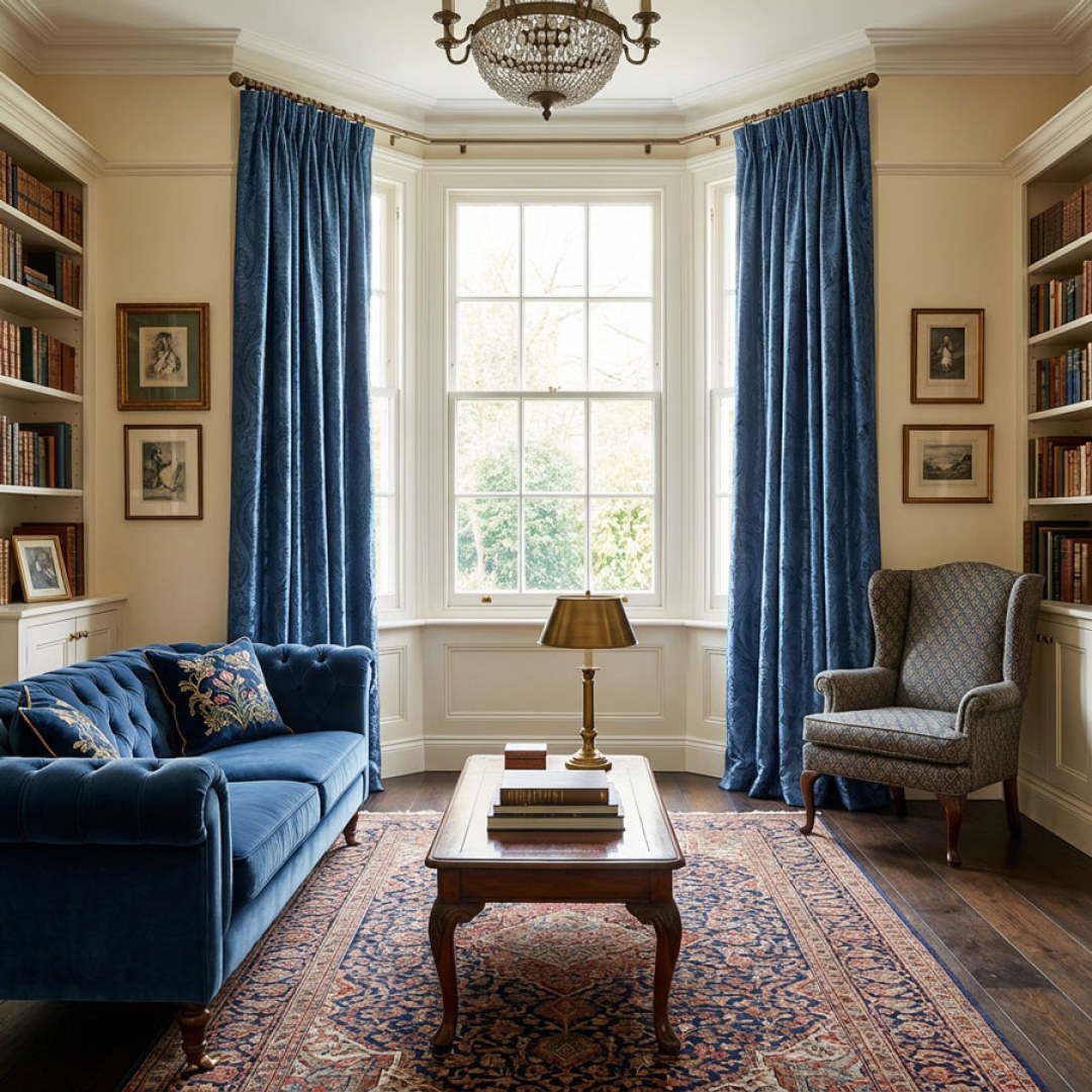Royal Mirage Navy Blue Damask Velvet Curtain