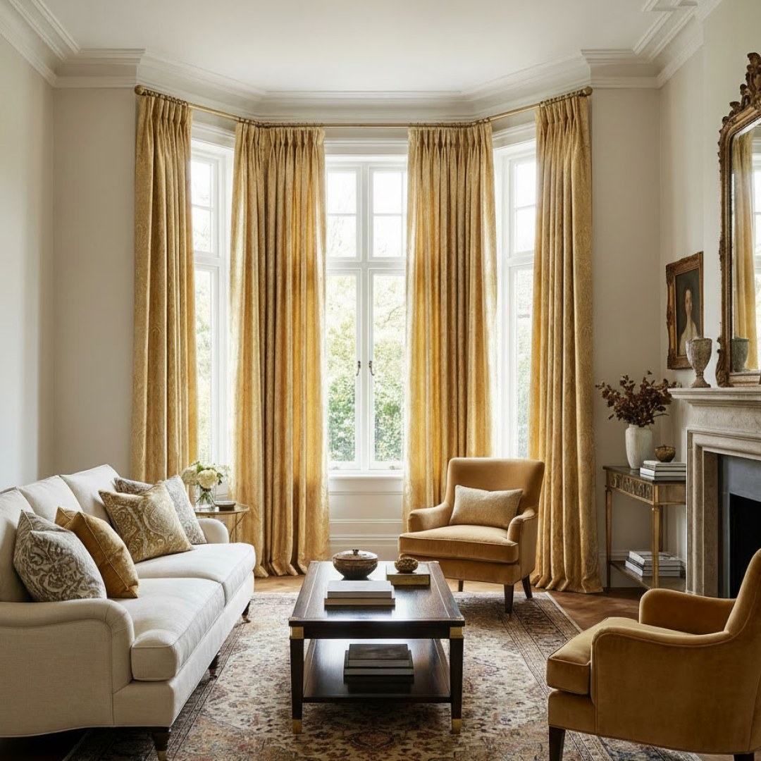 Opulent Floral Luxury Jacquard Gold Damask Curtain