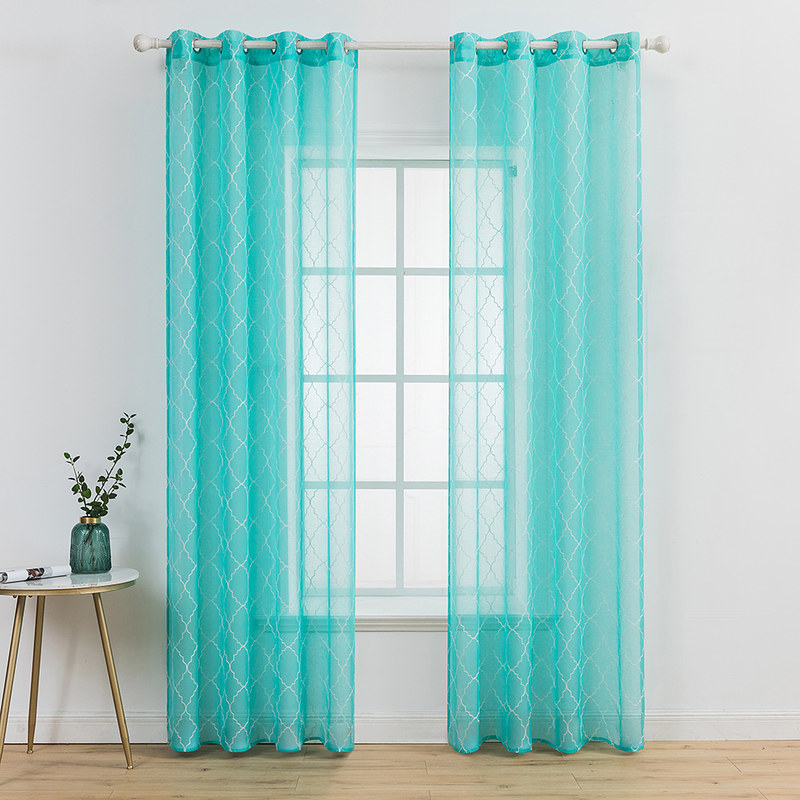 Fancy Trellis Tropical Aqua Detailed Embroidered Sheer Curtain